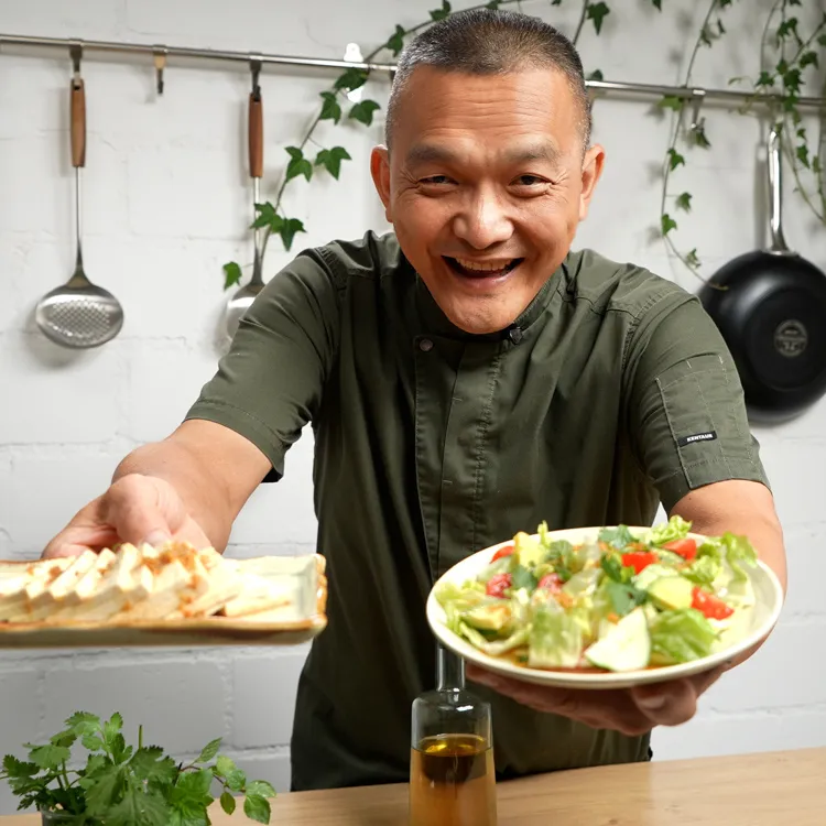 Herzlich willkommen zu unserem Kochkurs Asiatische Saucen in unserer veganen Kochschule. In dieser Lektion stellt sich unser malaysischer Koch Ben vor. Auch stellt Ben die KI-Stimme „Kai“ vor, die ihn im Kurs unterstützt, da seine Deutschkenntnisse begrenzt sind.