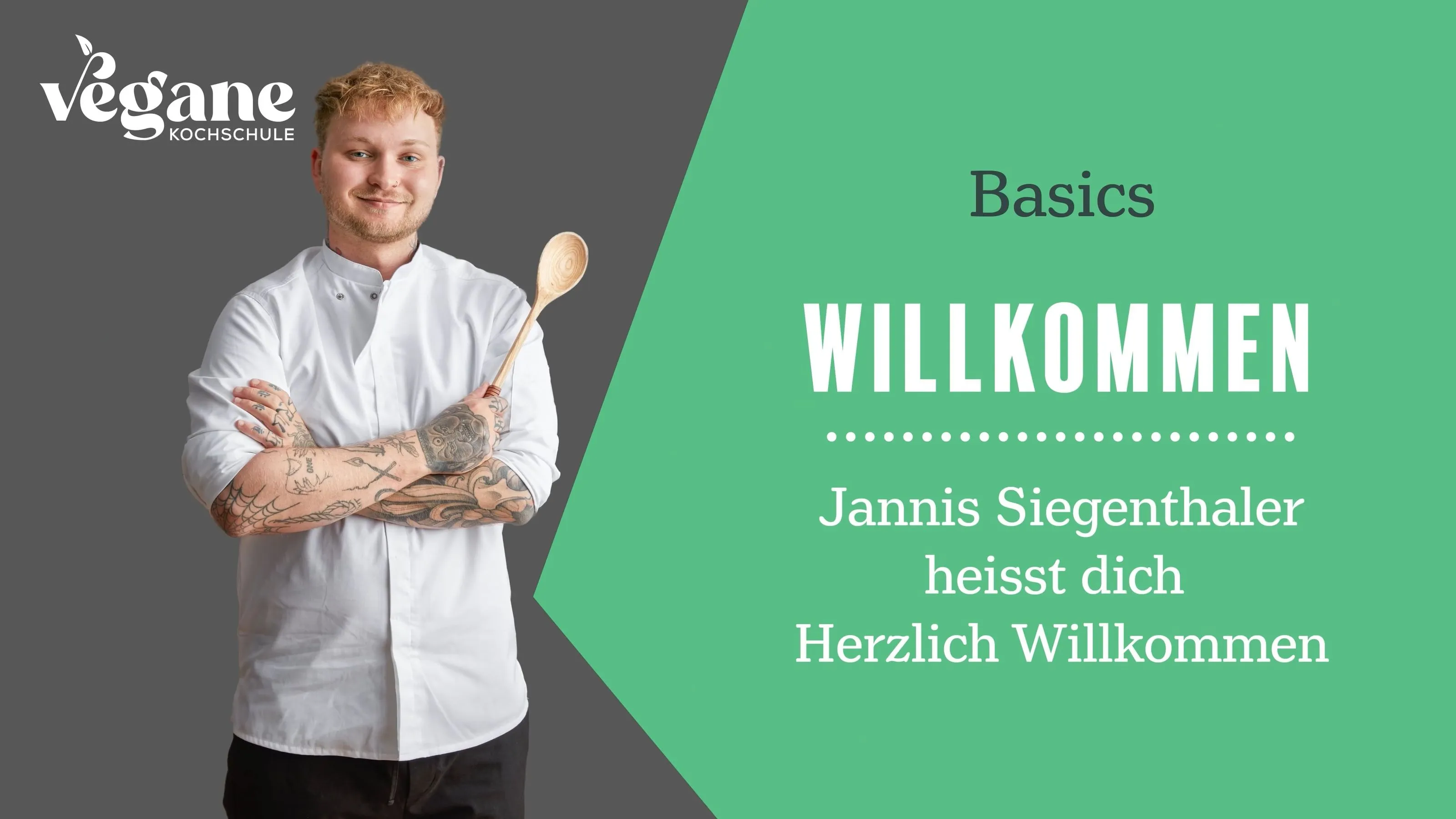 Willkommen zum Grundkurs 1 der veganen Kochschule! In diesem Video lernen Sie unseren Koch Jannis kennen, der Sie durch diesen Kurs begleiten wird. Er erzählt, was Sie erwartet und worauf Sie sich besonders freuen können.